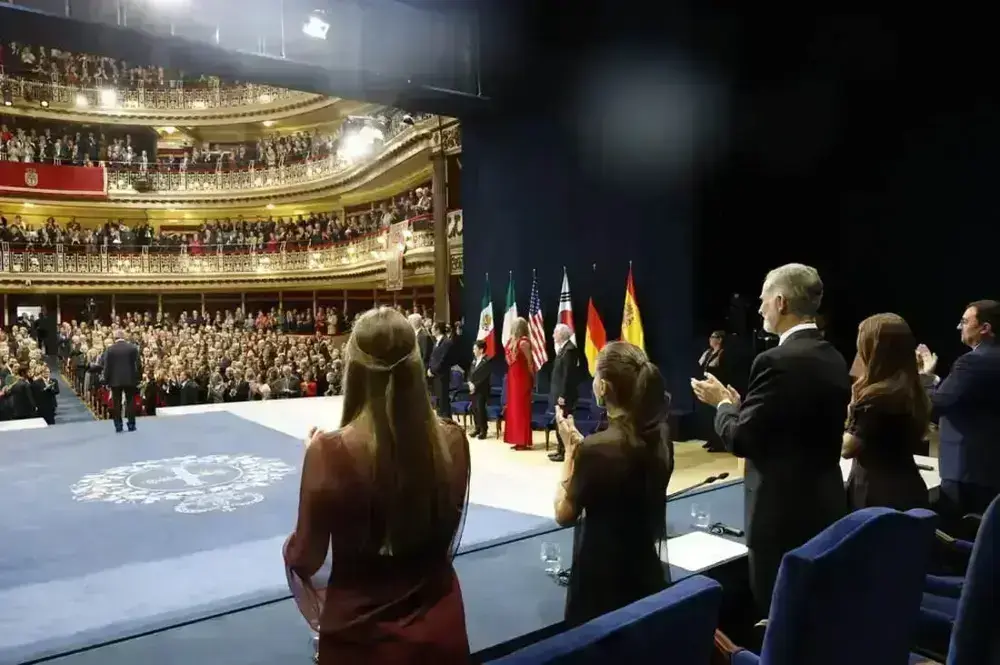 Oviedo (Principado de Asturias) Reino de España, viernes 24 de octubre de 2025 (Lasvocesdelpueblo).- El Teatro Campoamor de Oviedo acogió hoy acto institucional de la ceremonia de entrega de los Premios Princesa de Asturias 2025. Su majestad el rey de España, Felipe Juan Pablo Alfonso de Todos los Santos de Borbón y Grecia (Felipe VI); y la reina de España, Letizia Ortiz Rocasolano; acompañados de Sus Altezas Reales la Princesa de Asturias, Leonor de Borbón y Ortiz; y la Infanta, Sofía de Borbón y Ortiz; han presidido el acto de entrega de los galardones, que distinguen en esta edición a Byung-Chul Han, Premio Princesa de Asturias de Comunicación y Humanidades; Eduardo Mendoza, Premio Princesa de Asturias de las Letras; Douglas Massey, Premio Princesa de Asturias de Ciencias Sociales; Graciela Iturbide, Premio Princesa de Asturias de las Artes; Serena Williams, Premio Princesa de Asturias de los Deportes; Museo Nacional de Antropología de México, Premio Princesa de Asturias de la Concordia; Mary-Claire King, Premio Princesa de Asturias de Investigación Científica y Técnica; y Mario Draghi, Premio Princesa de Asturias Cooperación Internacional. Estuvo presente en segundo plano, su majestad la Reina consorte de España, Sofía Margarita Victoria Federica (Reina Sofia).