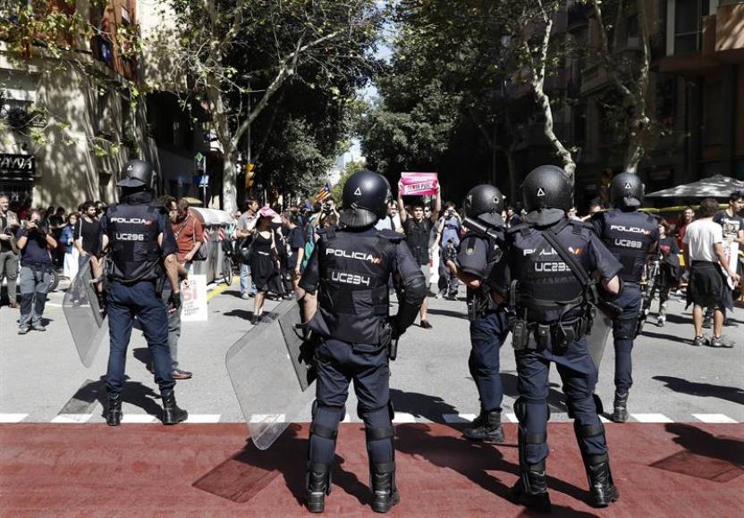 En su actuación, que coincidió con la operación de detenciones y registros en la sede del Departamento de Economía del 20S contra los preparativos del referéndum, los agentes permanecieron cerca de seis horas a las puertas de la sede de la formación mientras centenares de manifestantes se concentraban para impedir la entrada de los agentes en el local del partido.