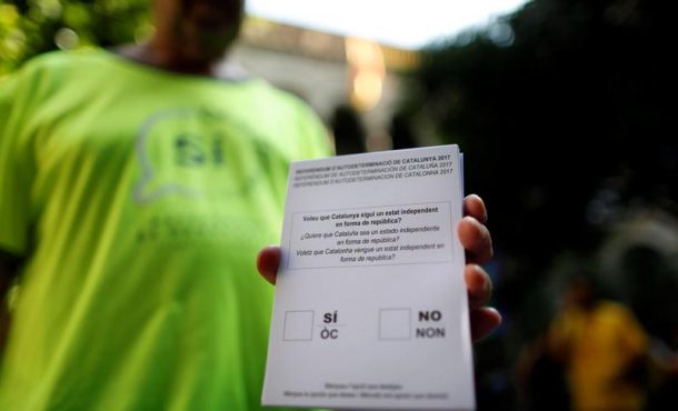 Lasvocesdelpueblo y Agencias – Auto del Tribunal catalán: «A partir del domingo 1-O se impedirá su apertura, procediendo al cierre de todos los que se hubieran llegado a abrir, y se requisará todo el material que estuviera en disposición de introducirse o estuviera dentro de los locales o edificios, incluyendo los ordenadores». Por otra parte, a partir de hoy, miércoles 27 de septiembre de 2017, el Tribunal Superior de Justicia de Cataluña (TSJC) asumirá la investigación del referéndum ilegal del uno de octubre en Cataluña (1-O); por lo que esta institución Judicial ha ordenado también hoy a la Fiscalía Superior de Justicia de Cataluña, a cuatro días del referéndum del 1-O, que cese en sus «diligencias, actuaciones e instrucciones» para impedir la votación porque una magistrada del alto tribunal catalán ya ha asumido la investigación. En un auto, la magistrada del alto tribunal catalán Mercedes Armas, que dirige la causa abierta por el 1-O contra el gobierno catalán, notifica a la Fiscalía que debe cesar sus actuaciones en relación al referéndum, en virtud del artículo 773.2 de la Ley de Enjuiciamiento Criminal (Lecrim), que prevé esta medida cuando exista un procedimiento judicial abierto sobre los mismos hechos. Barcelona (España), miércoles 27 de septiembre de 2017. Fotografía: CATALUÑA, domingo 24 de septiembre de 2017. Una persona muestra una de las papeletas del referéndum ilegal del 1-O de 2017. Efe