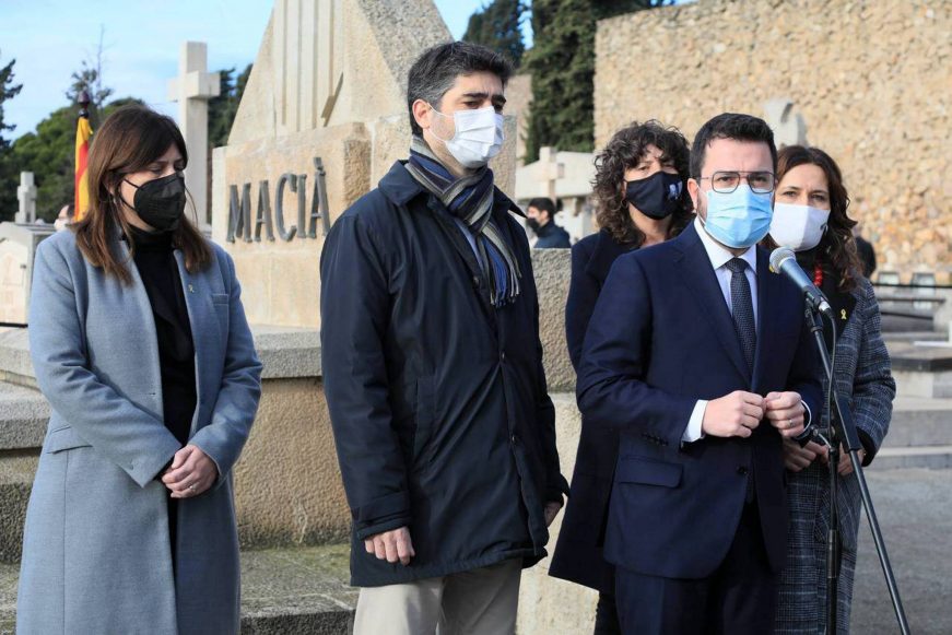 Redacción.- Barcelona (España), sábado 25 de diciembre de 2021. El presidente de la Generalidad separatista, el ultraizquierdista Pere Aragonès García, ha homenajeado esta mañana a Francesc Macià Llussá —político y militar (Teniente coronel del Ejército de Tierra de España de ideología republicana y separatista catalana), primer presidente de Gobierno de la Generalidad de Cataluña, y uno de los fundadores del partidos Estado Catalán (Estat Català) e Izquierda Republicana de Cataluña (Esquerra Republicana de Catalunya), que fue sucedido al frente de este último por el genocida de las «checas catalanas», Lluís Companys Jover, tras su muerte a los 74 años—.