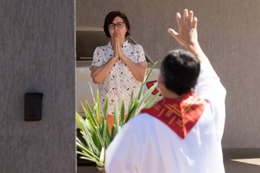 Para evitar la propagación del virus, en la fecha que conmemora el inicio de la Semana Mayor, en vez de las tradicionales procesiones con ramos y cultos en las iglesias, las misas se transmitieron por las redes sociales y las bendiciones se dieron a domicilio.