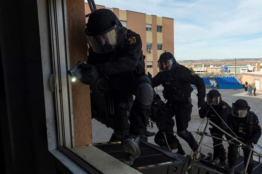 Barcelona (Reino de España), lunes 26 de octubre de 2020 (Amaya Guerra).- Dedicamos estas imágenes de los profesionales de la unidad de élite del Cuerpo Nacional de Policía de España «Grupo Especial de Operaciones» (GEO) a todas las mujeres jóvenes —»chicas», en lenguaje moderno— que gimotean cuando alguien les roza el brazo sin querer o se les levanta el barniz de uñas.