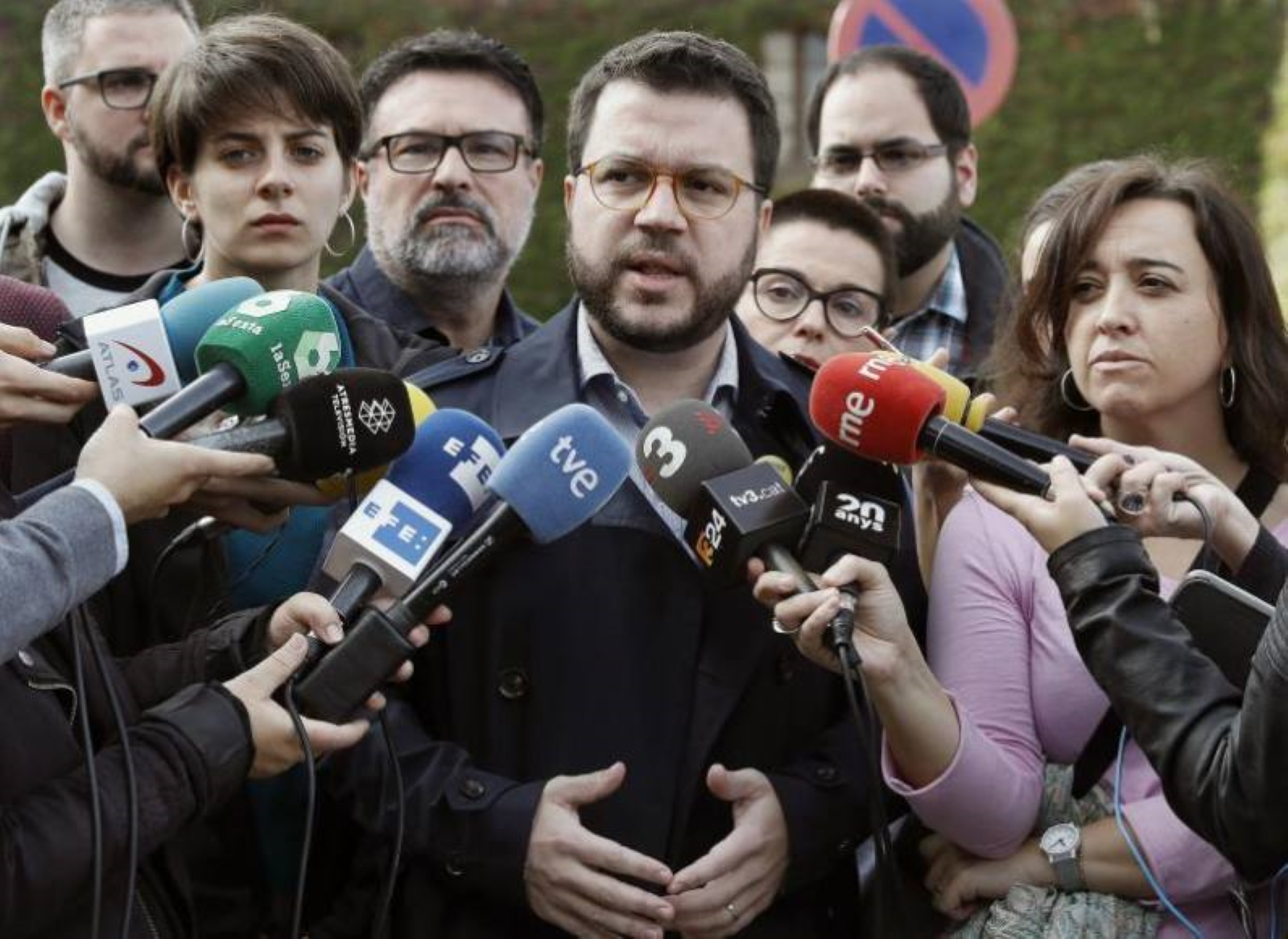 Lasvocesdelpueblo y Agencias – El vicepresidente de la Generalitat y coordinador general de ERC, Pere Aragonès: «Creemos que ahora lo fundamental es construir un diálogo entre gobiernos, entre iguales» porque «lo que no hemos tenido hasta ahora es a dos gobiernos cara a cara, negociación en la que se reclamará un referéndum de autodeterminación de Cataluña» como Nación y su derecho al celebrar un referéndum de independencia. «ERC reclama el fin de la represión» por el procés, que pasa también, asevera, «por encontrar soluciones para aquellas personas que están condenadas de manera absolutamente injusta», en referencia a los presos golpistas del Proceso separatista en Cataluña (Procés). «Eso tendrá que estar también sobre la mesa de negociación», adelanta Aragonés, quien deja entrever que «ERC está detrás de que en los últimos días no se hayan presentado recursos ante el Tribunal Constitucional por iniciativas independentistas en Cataluña y de que la Fiscalía haya cambiado de posición respecto a los CDR detenidos». El coordinador separatista amarillo afirma que en las negociaciones con el PSOE todavía se está «lejos de un acuerdo». «Estamos ante un conflicto político, no judicial, y, por lo tanto, la negociación tiene que servir no para resolver la investidura, si no para empezar a resolver el conflicto político entre Cataluña y España», indica. Barcelona (España), lunes 16 de diciembre de 2019.
