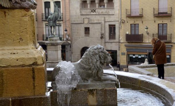 Efe – Dieciocho provincias de ocho comunidades, en alerta por frío, viento y nieve. Todas las provincias de Castilla y León, salvo Valladolid, continúan en alerta amarilla por nevadas que dejarán entre 18 y 10 centímetros de espesor en una cota de nieve en 1.200 o 1.400 metros, para bajar a última hora del viernes a 800/1.000 metros; en Burgos y Soria persiste la alerta amarilla por frío intenso. Madrid (España), jueves 26 de enero de 2017. Fotografía: Rastro de las heladas producidas por las bajas temperaturas en Segovia el pasado viernes. Efe.