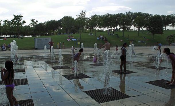 Efe – Veintisiete provincias de diez comunidades autónomas se encuentran hoy en alerta por altas temperaturas, de las que sólo Badajoz se sitúa en riesgo naranja, ante la posibilidad de que se alcancen los 40 grados, informa la Agencia Estatal de Meteorología (Aemet) en su página web. Madrid (España), martes 13 de junio de 2017. Fotografía: Varios niños juegan ayer en las fuentes del Parque Juan Carlos I de Madrid en una jornada muy calurosa, con temperaturas extremas que rondan los 40 grados, y «noches tropicales», en las que los termómetros no bajan de los 20 grados. Efe.