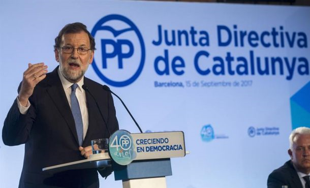 El jefe del Ejecutivo y líder del PP ha presidido una reunión de la Junta Directiva del PP catalán y ha afirmado que garantizará con «serenidad» pero también con «firmeza» que no habrá referéndum, que «ese disparate no se va aprobar» porque el Estado va a seguir actuando ante cada paso de los separatistas.