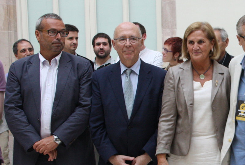 Los expresidentes del Parlamento autonómico español de Cataluña que toda la vida han sido de Convergencia y Unión (CIU) o Convergencia Democrática de Cataluña (CDC), -en este caso, durante los gobiernos de la familia corrupta catalana de Jordi Pujol Soley y Ferrusola y del régimen de Artur Mas Gavarró- o bien durante los gobiernos del Tripartito catalán, cierran las lista de la candidatura separatista catalán ‘Juntos Por El Sí’, que lidera el izquierdista Raúl Romeva, junto al derechista Artur Mas Gavarró, el actual presidente autonómico de Cataluña, Oriol Junqueras Vies de ERC y los colectivos separatistas ANC y Ómnium Cultural. Los tres ocuparán las últimas posiciones de la lista, justo por delante del ex-entrenador separatista de FC Barcelona, Josep Guardiola Sala. <Fotografía:De Izquierda a la derecha, los expresidente del parlamento catalán, Ernest Benach, Joan Rigol Roig y Núria de Gispert Català, Foto/ACN>.