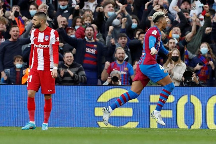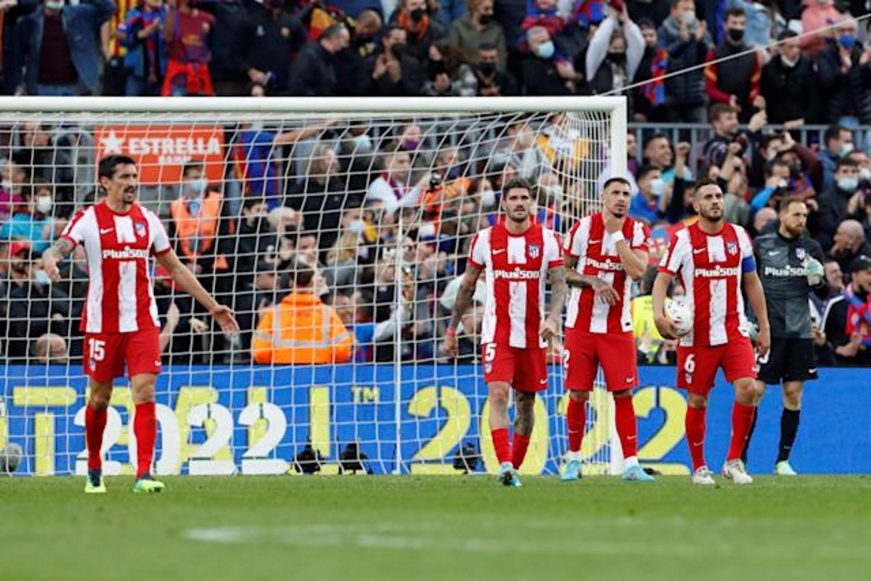 Efe. Barcelona (España), domingo 6 de febrero de 2022. El Barcelona de Xavi Hernández tumbó en una gran primera parte al Atlético de Madrid del ‘Cholo’ Simeone (4-2) y le arrebató la cuarta plaza de LaLiga Santander, que da derecho a disputar la Liga de Campeones la próxima temporada.