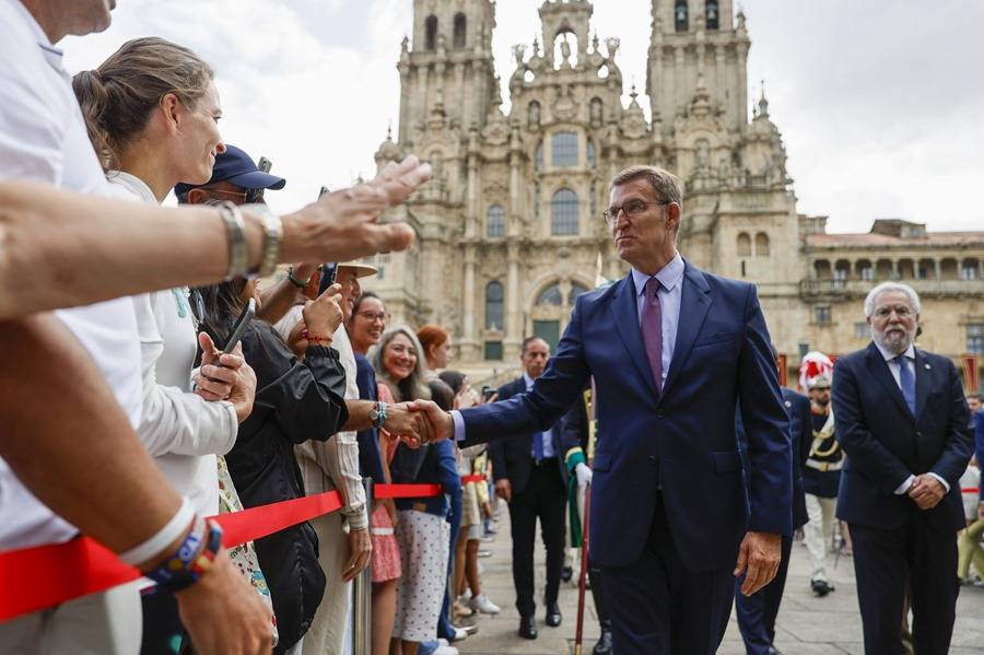 «Decir que no se tienen apoyos por haber hablado con algún grupo me parece una conclusión precipitada», ha señalado este martes en Compostela Núñez Feijóo, que en el Día de Galicia ha querido asistir, como hacía en sus tiempos de presidente de la Xunta, a la ofrenda al Apóstol.