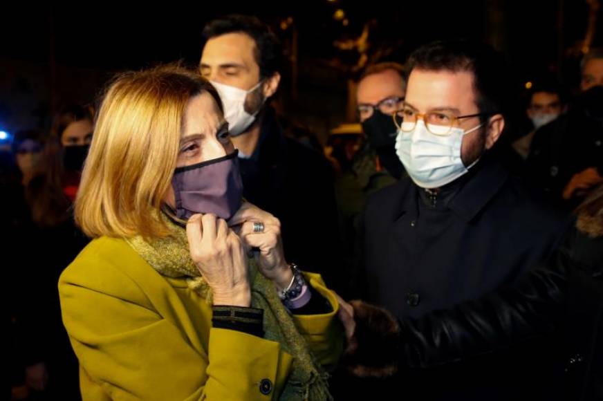 Forcadell ha acudido a Wad-Ras hacia las 20:50 horas, donde le esperaban decenas de separatistas para mostrarle su apoyo, entre ellos el vicepresidente del Gobierno secesioncita, Pere Aragonès, y el presidente del Parlamento de Cataluña, Roger Torrent.