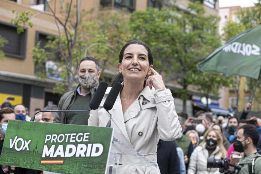 La candidata de VOX a la Presidencia de la Comunidad de Madrid, Rocío Monasterio San Martín, empatizó también con quienes están «hartos de la izquierda que se cree que los barrios son suyos, que se creen representantes de las mujeres o el lobby gay y de quienes nos dicen lo que tenemos que pensar o decir». «Tanto hablar de mujeres y cuando una niña es acosada en el Parque del Oeste por un grupo de Menores Extranjeros No Acompañados (MENAS) ni Montero ni Belarra hablan de ello», denunció.