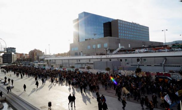 Centenares de personas han ido confluyendo en la plaza Joan Peiró, frente a una de las fachadas de la Estación de Sants, donde los concentrados han coreado lemas como «Libertad presos políticos» o «Huelga general» y han exhibido un cartel con el mensaje «Se ha acabado el autonomismo, implementad la república».