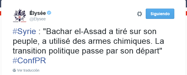 Eliseo: «Bachar el-Assad a tiré sur son peuple, a utilisé des armes chimiques. La transition politique passe par son départ»