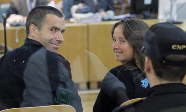 dirigentes etarras Ibon Fernández Iradi, «Susper», y Ainhoa García Montero, «Laia», durante el juicio que se sigue contra ellos en la Audiencia Nacional por ordenar a un comando que atentara contra dos empresas de transporte de Irún en agosto de 2000. Archivo Efe.