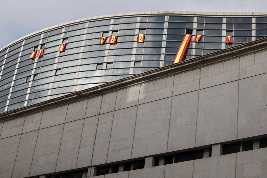 Madrid (España), jueves 16 de noviembre de 2023 (Lasvocesdelpueblo y Agencias).- VOX ha desplegado banderas de España con crespones y el escudo recortado desde varias ventanas del edificio de ampliación del Congreso de los Diputados en señal del luto por el fin de la democracia en España ante la investidura de un nuevo gobierno de Pedro Sánchez Pérez-Castejón, «ilegítimo e ilegal» tras sus pactos con la antiEspaña.