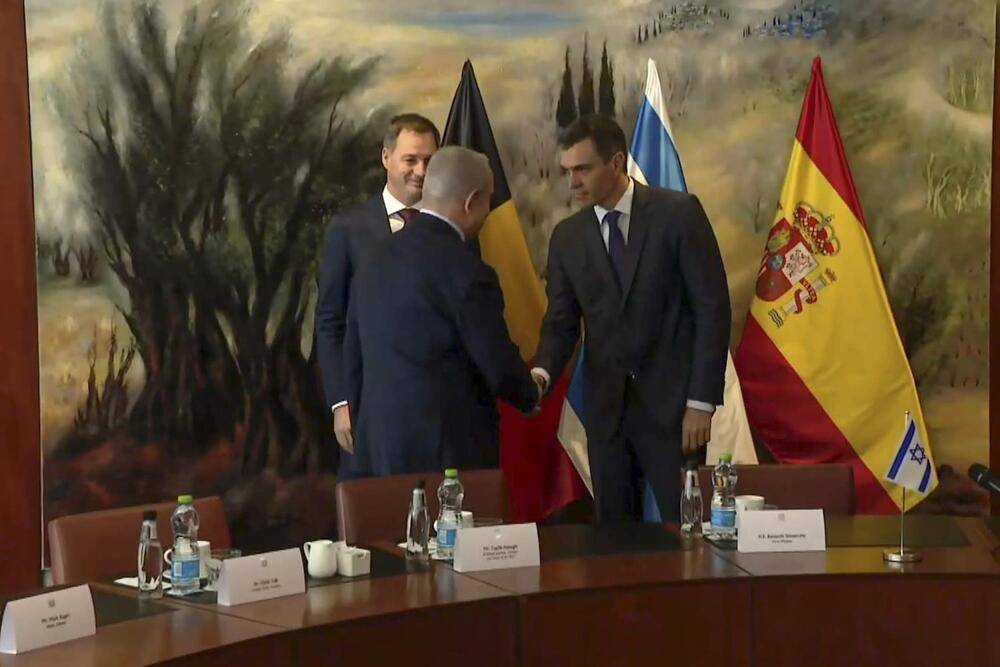 Tras un saludo inicial, Netanyahu invitó a Sánchez y De Croo a ver un vídeo con imágenes de esos ataques con varias escenas muy duras, según las mismas fuentes, para sustentar el relato que viene defendiendo Israel.