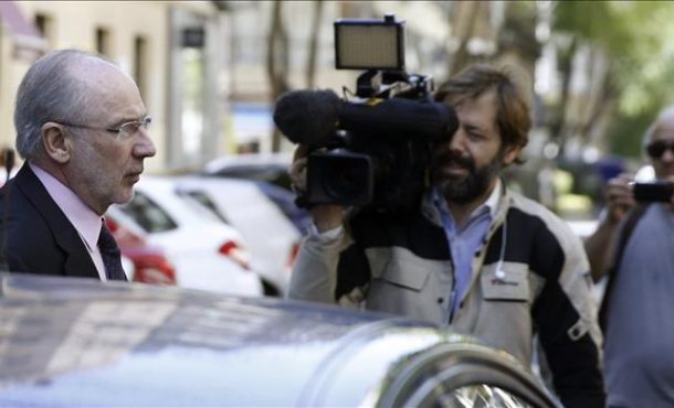 EFE – La Oficina Antifraude detectó dos pagos al exvicepresidente del Gobierno -del PP- Rodrigo Rato por parte de dos empresas contratistas de Bankia mientras fue presidente de esta entidad, de los que luego desvió una parte al hotel de Berlín del que es copropietario; Madrid 10 de agosto 2015. Se trata de las empresas Zenith Media y Publicis Comunicaciones España, que facturaron algo más de dos millones de euros con una sociedad pantalla que hizo llegar parte de los fondos a mercantiles propiedad del exdirector gerente del FMI, han confirmado a Efe fuentes de la investigación. <Fotografía: El exvicepresidente del Gobierno del Partido Popular, Rodrigo Rato, a su llegada a su domicilio, en Madrid. Foto archivo/Efe>.