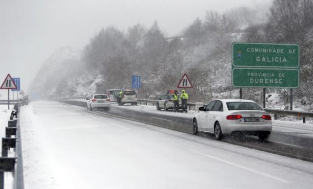 Asimismo, debido a la alerta naranja por nieve, en A Gudiña (Ourense), en la A-52, en lo alto de Erosa, numerosos camiones, entre 30 y 40, quedaron atrapados a consecuencia de los copos, que caían con intensidad. La carretera tuvo que ser cortada al tráfico desde las ocho menos cuarto hasta la una de la madrugada. La Consellería de Educación suspendió las clases y el transporte educativo en las montañas de Lugo y Ourense.