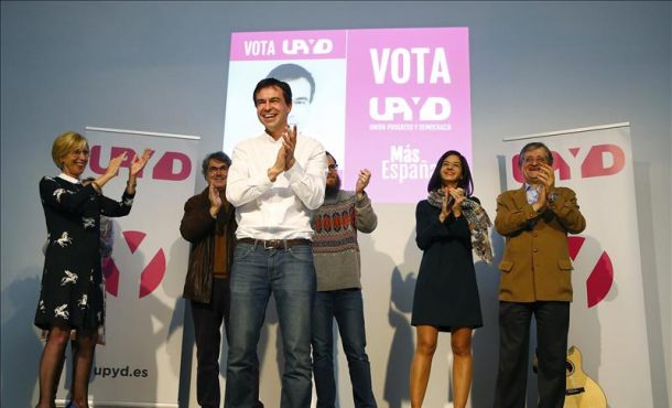 Efe – El candidato de UPyD, Andrés Herzog, ha advertido hoy de que tras el 20D España vivirá un «momento preocupante» en el que primará «la estrategia» de pactos entre partidos que generará un «escenario especialmente convulso», por lo que ha apelado al «voto útil» que cree que representa UPyD. Madrid, 18 diciembre 2015. Fotografía: El candidato a la Presidencia del Gobierno por UPyD, Andrés Herzog, es aplaudido por la diputada Rosa Diez (i) durante el mitin de cierre de campaña en Madrid. Foto/Efe.