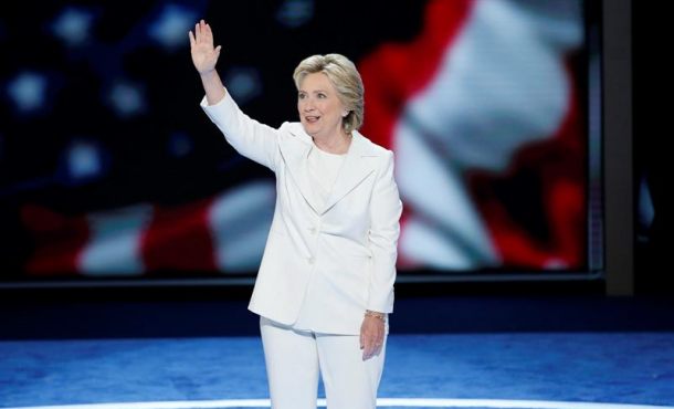 Clinton fue nominada oficialmente durante la jornada del martes, cuando los delegados de los 50 estados del país votaron a su favor por aclamación, después de que su rival en las primarias, el senador Bernie Sanders, cediera sus votos en favor de la también ex primera dama.