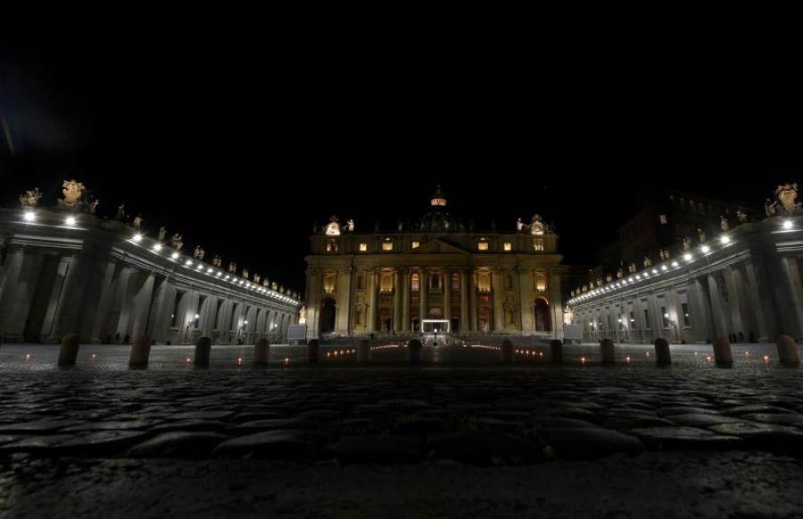 Este año, el Vía Crucis no se celebró en el Coliseo, como es habitual por ser considerado un símbolo de la persecución y del sufrimiento de los primeros cristianos, sino que tuvo lugar en una plaza vaticana completamente vacía, en silencio, iluminada por unas velas en el suelo, colocadas desde el obelisco hasta el sagrado.