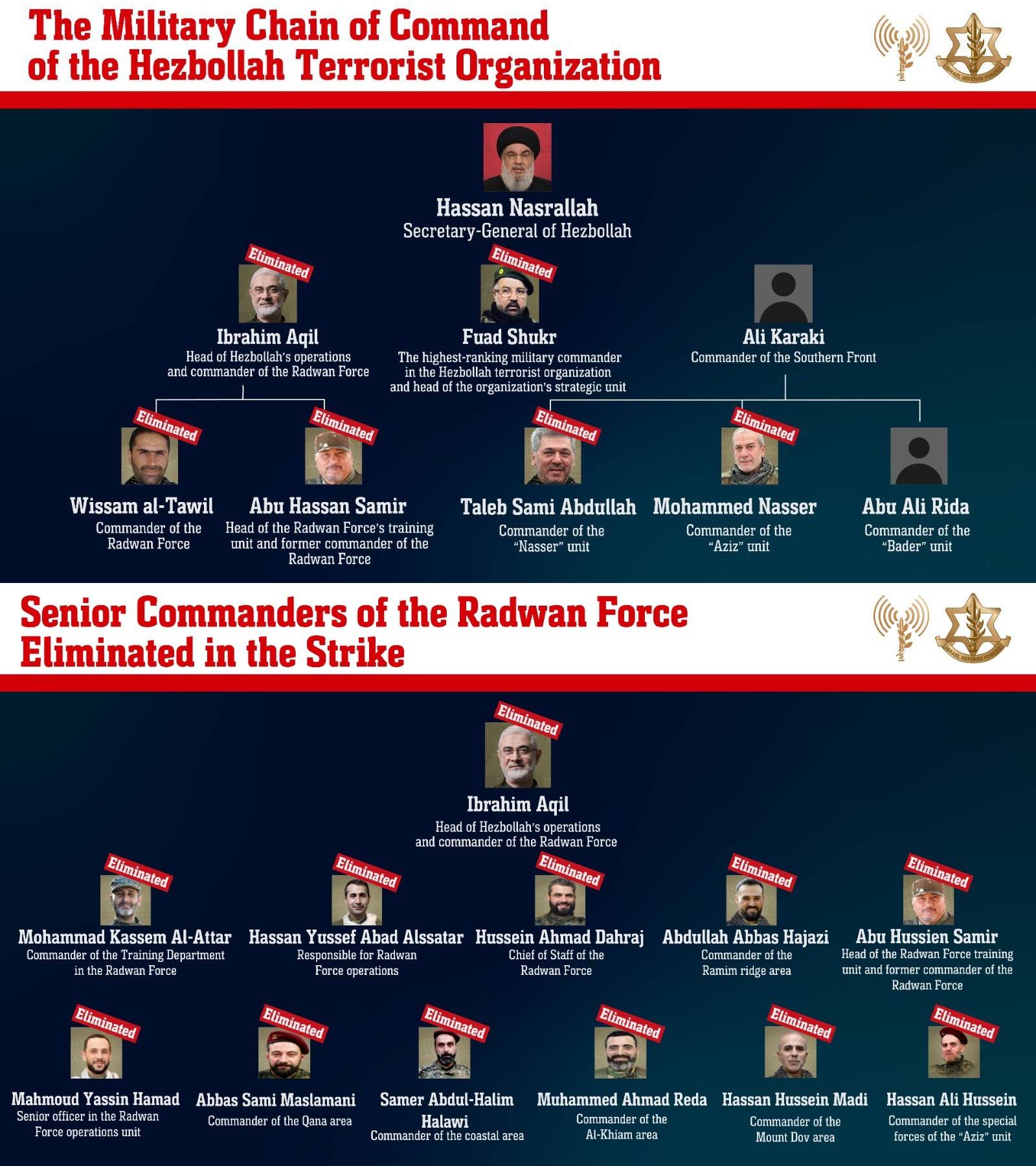 Entre ellos, los siguientes altos mandos de las Fuerza Radwan de Hezbollah: