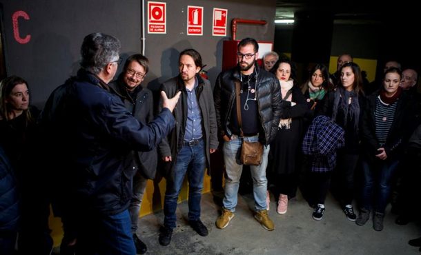 Efe – «Es una vergüenza en este país que el gobierno de PP y Ciudadanos (Cs) esté legislando a favor de los fondos buitre. Algunos en España se han llenado la boca hablando de la Constitución, y la Constitución Española dice que la vivienda es un derecho», ha criticado tras visitar a familias de Sant Joan Despí (Barcelona) que corren el riesgo de perder sus viviendas por la especulación. San Juan Despí (Barcelona), miércoles 7 de marzo de 2018. Fotografía: SAN JUAN DESPI (BARCELONA) ESPAÑA, 07.03.2018. El secretario general de Podemos, Pablo Iglesias (3i), y el coordinador general de Catalunya en Comú, Xavier Dòmenech (2i), durante su visita a las 121 familias que residen en el bloque 113 de la Avenida Barcelona de Sant Joan Despi, situado a unos 20 minutos de la capital catalana, a las que les han planteado subidas del alquiler del 50 %, lo que supone para muchas de ellas un desahucio de facto porque con sus ingresos no pueden asumir el incremento. Tras la visita, Iglesias ha pedido al PSOE y a otras fuerzas de la oposición hacer un frente común para cambiar las leyes hipotecarias y frenar la especulación inmobiliaria: «Esperamos que pasen de las palabras a los hechos». Efe.