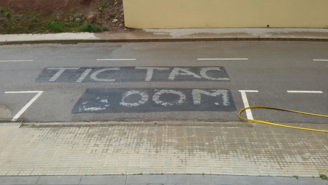Redacción – Denuncian fuentes de esta familia dividida catalana que el independentismo ha pintado un mensaje «amenazante», tal como se puede ver en las imágenes, «Tic Tac; Boom» -subrayan- «exactamente en la puerta en la salida del parking de su casa»; concretamente «a dos metros de la entrada de la casa» cuya propietaria es una «independentista» con dos hijos y nieto: «la hija es independentista» como la madre mientras el hijo, un joven padre de una menor, es «español» y activista en primera línea en Cataluña; se trata del Jaime Vizern López, uno de los cuatro ideólogos de la nueva plataforma española «Grupos de Defensa y Resistencia» (GDR); quien también es el principal promotor de las llamadas ‘Acampadas Nacionales‘ en Plaza de Cataluña de este invierno de 2018 desde la entidad que presidente ‘Democracia Unidad Españaola’ (DUE). Manresa (Barcelona) España, viernes 13 de abril de 2018. Fotografía: MANRESA (BARCELONA) ESPAÑA, 11.04.2018. Vista de la amenaza de muerte que sufre una familia dividia catalana en Manresa porque uno de los hijos de la madre independentista de esta realidad catalana es un activista español en primera línea de defensa de la convivencia en Cataluña, Jaime Vizern López, se llama. Este español ante el daño que produjo el proceso separatista a su familia, se levantó como millones de catalanes hoy en día para dar la cara por España. Lasvocesdelpueblo