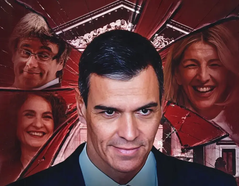 La izquierda española Frente Obrero ha hecho estas afirmaciones este noche en un comunicado/convocatoria del 6D en su cuenta oficial en la red social X (antes Twitter) –@frenteobreroesp– junto a un combo de fotografía con Pedro Sánchez Pérez-Castejón en portada como el capo de una organización criminal, junto a la líder de SUMAR, Yolanda Díaz Pérez; la vicepresidente primera del Gobierno de España, ministra de Hacienda desde junio de 2018 y vicesecretaria general del PSOE desde julio de 2022, María Jesús Montero Cuadrado; y el prófugo de la Justicia española, expresidente del régimen nacionalsocialista golpista de 2017 frente a la Generalidad de Cataluña, fundador y presidente de Junts per Catalunya, Carles Puigdemont Casamajó.