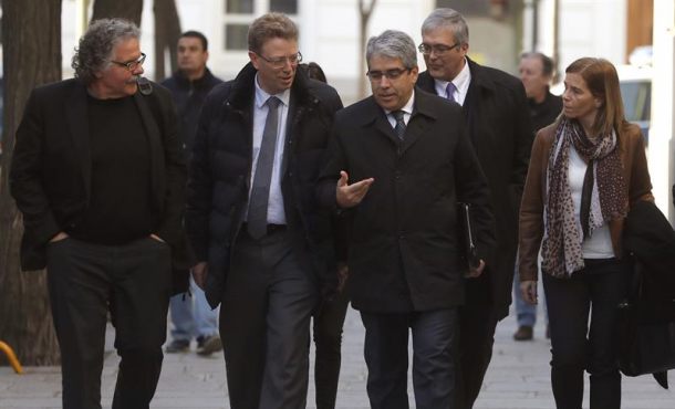 fe.Agencias – Por su parte, la abogada Eva Labarta, defensora de Francesc Homs, ha reclamado la absolución del acusado al considerar que no se ha probado que sea autor de dichos delitos. Madrid (España), miércoles 1 de marzo de 2017. Fotografía: El ex consejero de Presidencia del entonces gobierno de Artur Mas durante el golpe de Estado separatista del 9N 2014 en Cataluña y actual diputado del PDeCAT Francesc Homs, (segunda posición a la derecha), acompañado de su esposa, (derecha), y del diputado de ERC Joan Tardá, (izquierda), entre otros, se dirigirse a la sede del Tribunal Supremo que celebra la tercera y última jornada del juicio por desobedecer al Constitucional en la consulta del 9N. Efe.