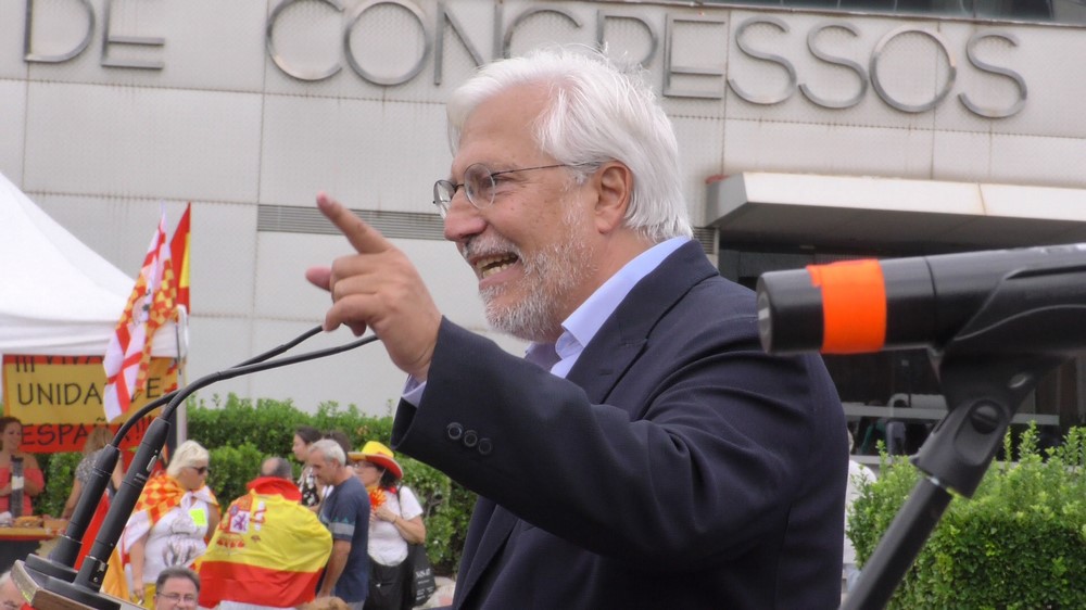 Redacción – El fundador y presidente del Grupo Intereconomía TV, Julio Ariza Irigoyen, muestra su apoyo a la resistencia española en Cataluña, ante más de medio millón de españolas y españoles, reunidos en la Avenida Reina Maria Cristina de Barcelona. Para Ariza, las mujeres y hombres de España que limpien las calles y resto de espacios públicos de Cataluña de la simbología separatista son unos valientes cuya tarea está devuelve a España su «libertad». Barcelona (España), jueves 27 de septiembre de 2018. Fotografía: BARCELONA (ESPAÑA), 09.09.2018. Vista del fundador y presidente del Grupo Intereconomía TV, Julio Ariza Irigoyen, durante su discurso este mediodía del domingo, 9 de setiembre de 2018, en la multitudinaria marcha y concentración del 9-S. Ñ Pueblo Lasvocesdelpueblo.