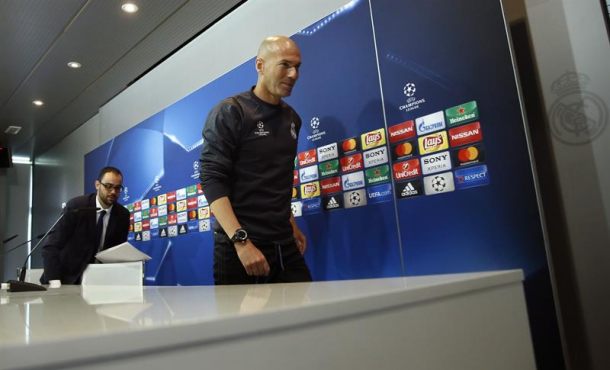 Efe – La evolución táctica de Zidane ante un maestro de la permutación. Los primeros pasos de Zidane consistieron en devolver la ilusión e instalar en la felicidad al madridismo. Madrid (España), jueves 1 de junio de 2017. Fotografía: El entrenador francés del Real Madrid, Zinedine Zidane, durante la rueda de prensa del martes. Efe
