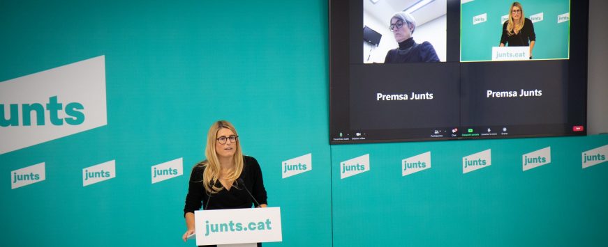 «Todo lo que se avanza desde el Parlamento de Cataluña sistemáticamente nos lo encontramos parado», sentenció la antiespañola de la derecha separatista JxCat este lunes en rueda de prensa en Barcelona, posterior a una reunión semanal de los del huido golpista Carles Puigdemont Casamajó.