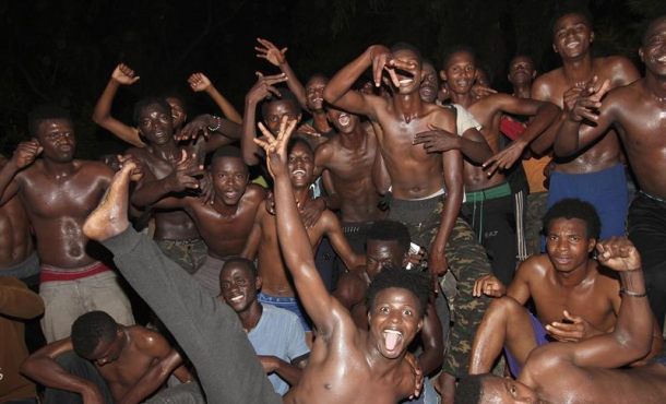 Efe – El asalto se ha producido sobre las 04:00 horas de la madrugada en la zona fronteriza próxima a la conocida como Finca Berrocal, lugar donde tienen una mayor facilidad para llegar hasta el perímetro debido a las partes ciegas donde las cámaras no pueden detectarlos. Ceuta (España), viernes 11 de agosto de 2017. Fotografía: CEIUTA (ESPAÑA), 11.08.2017. Unos doscientos inmigrantes subsaharianos cruzaron el paso fronterizo del Tarajal, en la ciudad autónoma de Ceuta, a la carrera, sin que los agentes de los Cuerpos y Fuerzas de Seguridad del Estado pudieran hacer nada para evitarlo, el pasado 7 de agosto. Efe.
