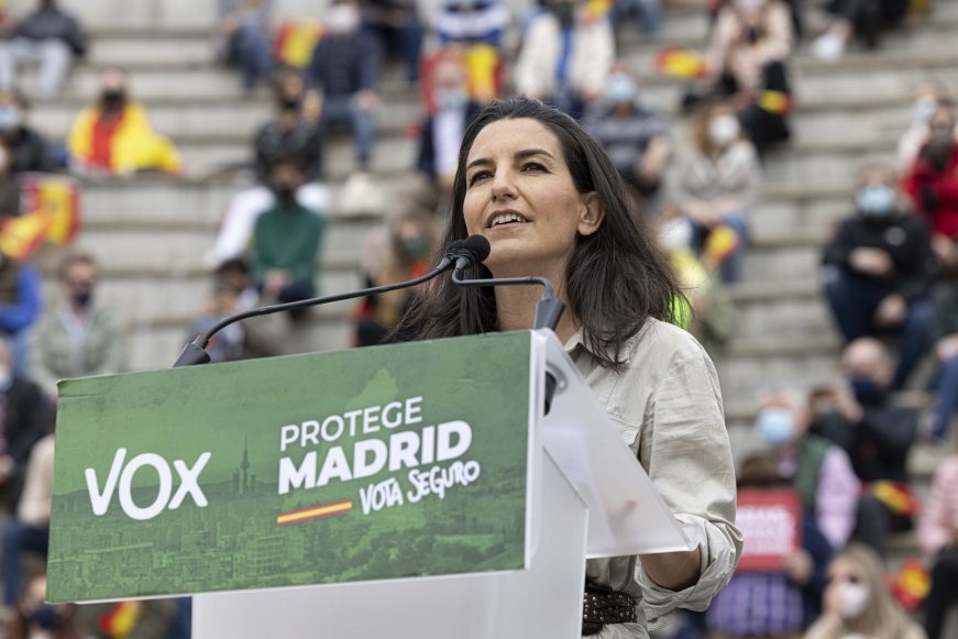 Lasvocesdelpueblo y Agencias – La candidata de VOX a la Presidencia de la Comunidad de Madrid para las elecciones madrileñas del próximo martes, 4 de mayo (4M), Rocío Monasterio San Martín, ha planteado este lunes hacer un debate electoral sin la izquierda, «que no quiere ir» porque, a su juicio, el candidato de Ciutadans Partit de la Ciutadanía-Ciudadanos (Cs), Edmundo Bal Francés, sí quiere y la candidata del PP a la reelecciones, Isabel Díaz Ayuso, «igual podría ir». Madrid (España), lunes 26 de abril de 2021.