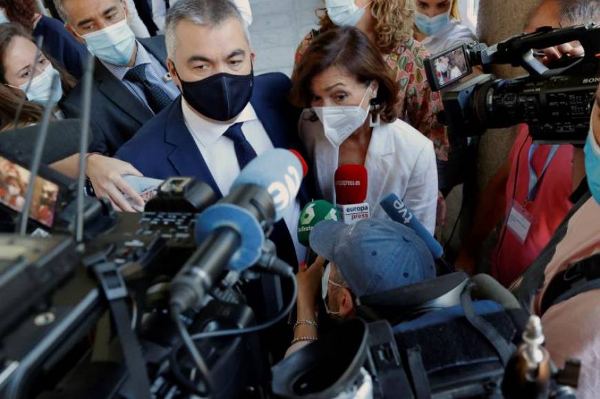 Efe.- Madrid (España), miércoles 14 de julio de 2021. La ex vicepresidenta primera del Gobierno Carmen Calvo ha asegurado que se encuentra «estupendamente», ayudando a su partido, como ha hecho siempre, y seguirá haciendo desde su escaño en el Congreso de los Diputados.