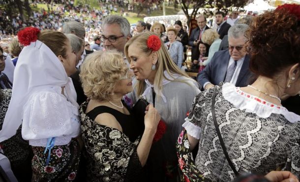 Agencias – Tras el izado de bandera en honor a San Isidro, los representantes políticos se han desplazado hasta los jardines de Cecilio Rodríguez, en el Retiro, donde tendrá lugar el acto institucional del día de San Isidro. Madrid (España), lunes 15 de mayo de 2017. Fotografía: La alcaldesa de Madrid, Manuela Carmena (2i), y la presidenta de la Comunidad de Madrid, Cristina Cifuentes (2d), en la fiesta de San Isidro el año pasado. Archivo Efe.