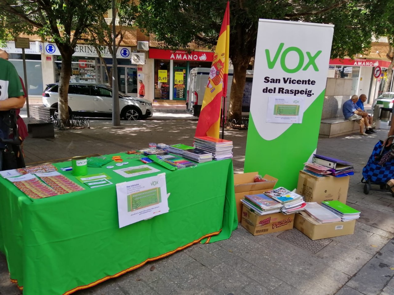 Este sábado, día 7 de septiembre de 2019, la militancia de Vox San Vicente del Raspeig (Alicante), ha montado una Mesa Solidaria de recogida de material y libros escolares para «las familias que están pasando una situación desfavorable», informan fuentes valencianas del partido de Santiago Abascal.