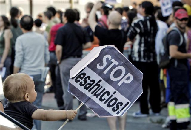 Redacción – El Tribunal Superior de Justicia de la capital de España (Madrid) estima parcialmente el recurso presentado por una mujer que reside de manera ilegal en una vivienda propiedad del IVIMA. En el asunto presente, se trata de una mujer que reside en una vivienda propiedad del IVIMA con una hija menor de edad, nacida en el año 2002, sobre la que perdió el derecho de uso tras el fallecimiento de su marido en 2004 al extinguirse la relación contractual. Madrid (España), miércoles 21 de marzo de 2018. fotografía: Un niño sujeta un cartel en una concentración contra un desahucio. Archivo Efe
