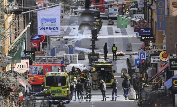 Efe – Las autoridades sanitarias regionales habían informado minutos antes de un muerto y 15 heridos, nueve de ellos graves, aunque esa cifra solo se refiere a las personas atendidas en centros hospitalarios y no incluye a quienes pueden haber muerto en el lugar del ataque. Copenhague (Suiza), viernes 7 de abril de 2017. Fotografía: Miembros de las policía evacuan la zona del atentado en el centro de Estocolmo, Suecia hoy 7 de abril de 2017 donde un camión arrolló a los viandantes en una zona peatonal de la ciudad. Al menos tres personas han muerto al atropellar un camión a varios viandantes en el centro de Estocolmo en lo que las autoridades consideran un atentado terrorista, confirmó el primer ministro sueco, Stefan Löfven. Efe.