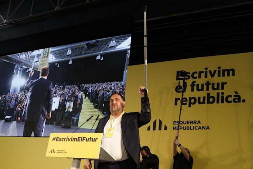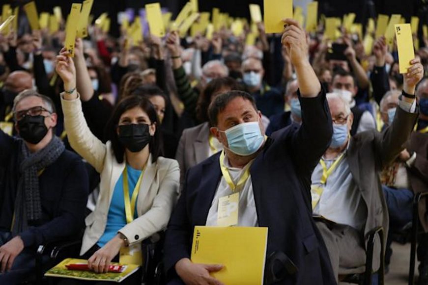 Lasvocesdelpueblo y Agencias.- Hospitalet de Llobregat (Barcelona) España, domingo 13 de marzo de 2022. A la espera de conocer la fecha de la próxima mesa de diálogo del Procés golpista en Cataluña entre Gobierno de coalición separatista de la Generalidad de Cataluña que preside Pere Aragonés garcía (ERC) y Gobierno de coalición socialcomunista de España que preside Pedro Sánchez Pérez Castejón (PSOE, ERC ha aprobado su nueva hoja de ruta política que redobla la apuesta de los amarillos separatistas por una negociación que el golpista político preso del Procés, indultado parcialmente, y líder de ERC, Oriol Junqueras Vies, ha dado «por segura».