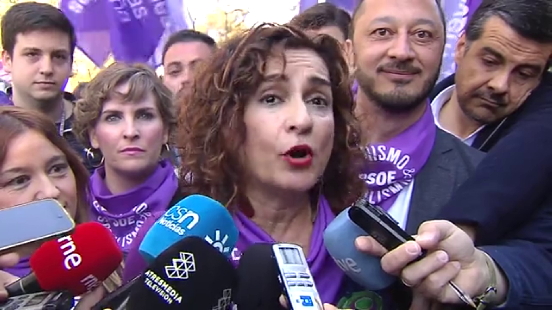 Lasvocesdelpueblo y Agencias – La ministra de Hacienda y Portavoz del Gobierno, que participó en la manifestación del 8 de marzo de 2020 (8M) en Sevilla atacando a VOX y mostrando el apoyo de su Gobierno a los miles de manifestantes, María Jesús Montero, ha asegurado ahora este jueves que todas las administraciones públicas trabajan «de manera incansable» para conseguir material sanitario en los mercados internacionales en competencia con otros países: «Estamos en una guerra auténtica por hacernos con los respiradores, las mascarillas… en eso estamos todos». Madrid (España), viernes 27 de marzo de 2020.