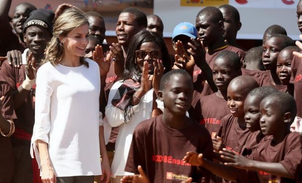 Durante la visita al centro de acogida, cercano al Lago Rosa de Dakar, la Reina quiso reflejar esta actitud y tuvo gestos de complicidad hacia los chicos que viven en él, que la recibieron con los brazos abiertos.