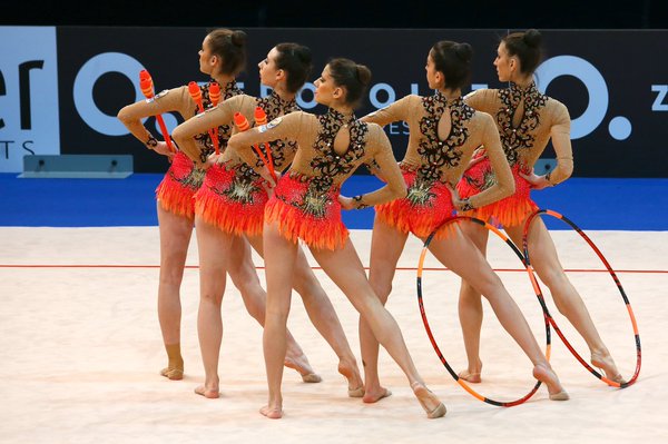 Sandra Aguilar, Artemi Gavezou, Elena López, Lourdes Mohedano y Alejandra Quereda registraron la mejor calificación de la final (17.450) y se alzaron con la medalla de oro, un metal que mejora el bronce logrado en el concurso completo. Completaron el podio en la modalidad de cinco cintas los conjuntos de Israel y Ucrania, con 17.300 y 17.250 puntos, respectivamente. Tras ellos, Japón, Finlandia y Rusia.