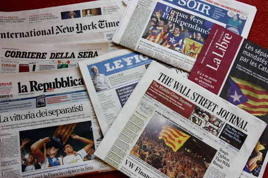 También el EU Observer ‘abre su portada (y la’ newsletter ‘que cada mañana reciben en su correo miles de eurócratas) con el titular «Los partidos pro independencia ganan la mayoría en el Parlamento catalán». El diario asegura que los catalanes han dado a los partidos independentistas «el mandato para intentar separarse de Madrid».