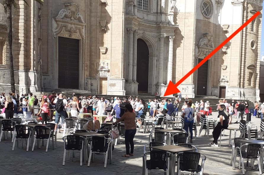 FOTOGRAFÍA. CÁDIZ (ESPAÑA), 01.06.2020. «Cola en Cádiz para pedir la paguita [el «salario mínimo vital» o «ingreso mínimo vital» o también conocido como sueldo mínimo vital»] del coletas [se refiere el vicepresidente de Gobierno socialcomunista Pablo Iglesias (Unidas Podemos), también conocido como como el chepas]. Según mi amigo, era kilométrica. Es la catedral de Cádiz. La cola llega desde ahí hasta la Plaza de San Juan de Dios de Cádiz donde está el Ayuntamiento de Cádiz. Desde el extremo opuesto, la cola llega casi hasta la Plaza del Mentidero. Prácticamente, la cola atraviesa el casco antiguo de Cádiz». Se ha difundido esta imagen este lunes en la red Whatsapp junto a este comentario.