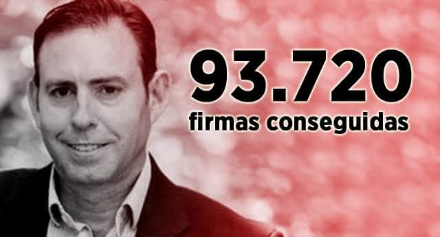 Según el alcalde de Jun, la campaña que ha llevado a cabo en las últimas semanas ha logrado recopilar unas 94.000 firmas, que serían más de la mitad del total de militantes.
