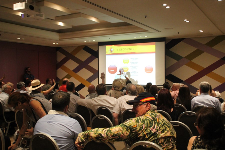 Hoy, dado que ha sido una iniciativa de la gente de a pie, los partidos presentes en la sala de acto II de Hotel Gallery de Barcelona, de la calle del Rosselló, 249, 08008 Barcelona: VOX, Plataforma por Cataluña (PxC) y entre otros no forman parte de la organización del 9-S.