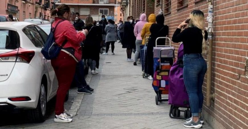 Lasvocesdelpueblo y Agencias – La fotografía de los nuevos pobres creados por las políticas del Gobierno de coalición socialcomunista del Reino de España del partido Socialista Obrero Español (PSOE) del presidente Pedro Sánchez Pérez-Castejón y de la ultraizquierda Podemos (Unidas Podemos) del vicepresidente segundo Pablo Manuel Iglesias Turrión y de la ministra de Igualdad, Irene Montero Gil durante la pandemia del virus chino, el covid 19 (coronavirus), muestra un rostro mayoritariamente femenino, de unos 44 años y de nacionalidad española, pero también muchas caras de familias con hijos que de pronto no pueden pagar ni la luz y que se acercan peligrosamente al abismo de la pobreza severa y de la exclusión social. Madrid (España), domingo, 14 de marzo de 2021.