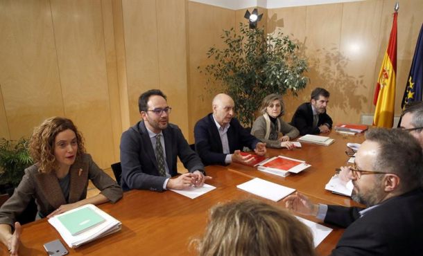 Agencias – Las Ejecutivas de Ciutadans Partido de la Ciudadanía, Ciudadanos C’s) de Albert Rivera Díaz y Partido Socialista Obrero Español (PSOE) de Pedro Sánchez Pérez-Castejón se van a reunir hoy en sus respectivas sedes para ratificar el acuerdo de investidura y legislatura pactado entre los dos partidos este martes 23 de febrero 2016. Madrid, 24 febrero 2016. Fotografía: El portavoz del PSOE en el Congreso, Antonio Hernando (2i), junto a Meritxell Batet (2i), Rodolfo Ares (3i), Maria Luisa Carcedo (4i) y José Enrique Serrano (i), y el portavoz de C’s Juan Carlos Girauta (2d) Efe.